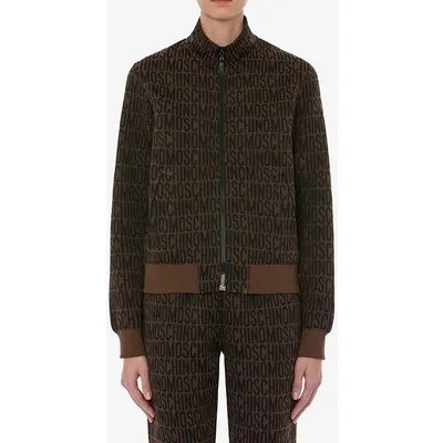 Moschino Allover Logo Cotton Blend Sweatshirt Brown