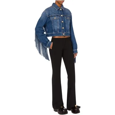 Moschino Cropped Jacket With Fringes Blue