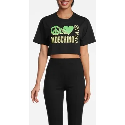 Moschino Cropped Peace & Love Logo T-shirt Black