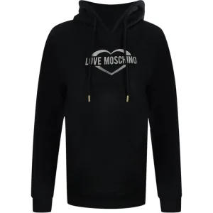 Love Moschino Zwarte Hoodie Met Zilverkleurig Hartlogo