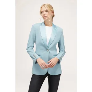 Motivi Single-breasted Jacket With Satin Inserts Sky Blue