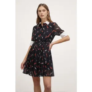 Motivi Lipstick Pattern Georgette Chemisier Dress Black