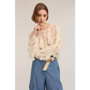 Motivi Long-sleeved Lace Blouse With Ruching White