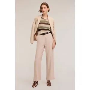 Motivi Palazzo Trousers In Flowing Viscose Blend Fabric Beige