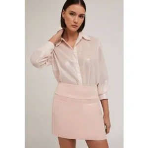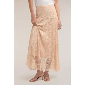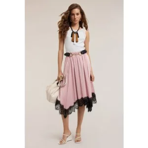 Motivi Satin Skirt With Lace Trim Powder Pink