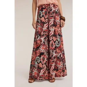 Motivi Flowing Palazzo Pants With Ethnic Pattern Red