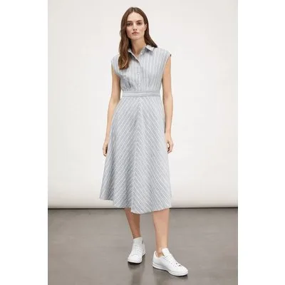 Motivi Linen Blend Pinstripe Chemisier Dress Grey