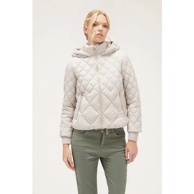 Motivi Padded Jacket With Hood And Knit Borders Grey