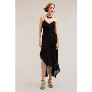 Motivi Flounced Midi Dress With Ruching Black