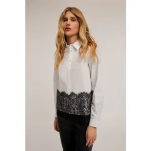Motivi Keyhole Shirt With Lace Band White