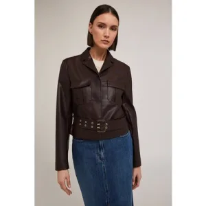 Motivi Coated Fabric Jacket With Belt Brown