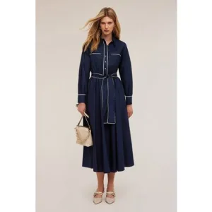 Motivi Poplin Chemisier Dress With Profiles Blue