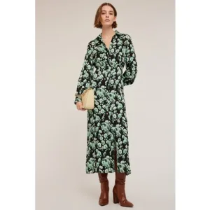 Motivi Floral Patterned Satin Chemisier Dress Green