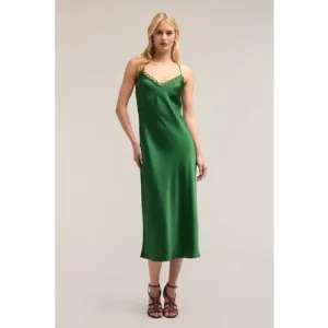 Motivi Satin Midi Dress Green