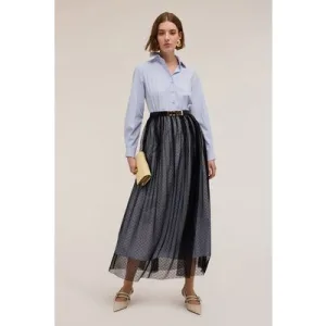 Motivi Chemisier Dress With Plumetis Tulle Skirt Light Blue