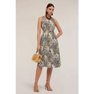 Motivi Jungle Pattern Flared Dress Military Green