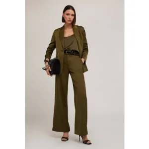 Motivi Satin Palazzo Trousers Military Green