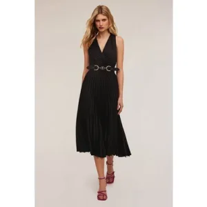Motivi Pleated Midi Dress With Back Cut-out Black