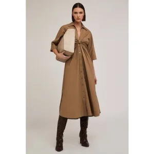 Motivi Chemisier Dress With Knot Brown