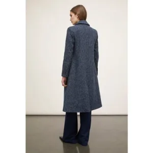 Motivi Double-breasted Yarn Dyed Coat Blue