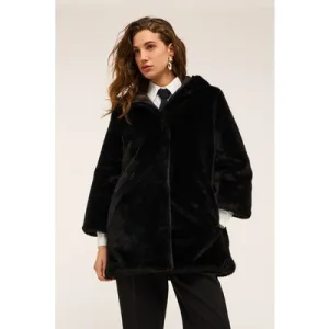 Motivi Long Teddy Cape With Hood Black