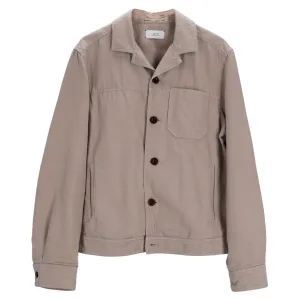 De heer P. Camp-Collar jas van geverfd katoen in ecru.