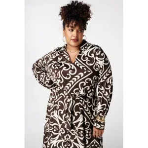 MS Mode A-lijn jurk met paisley print bruin
