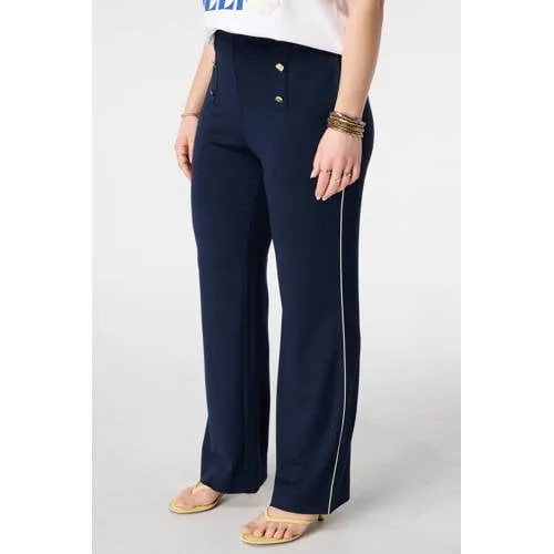 MS Mode wide leg regular waist broek donkerblauw