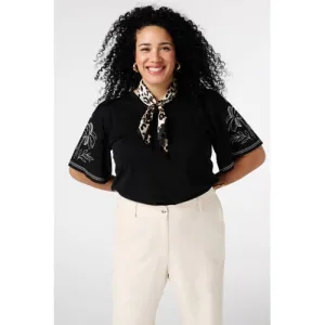 MS Mode T-shirt broderie zwart