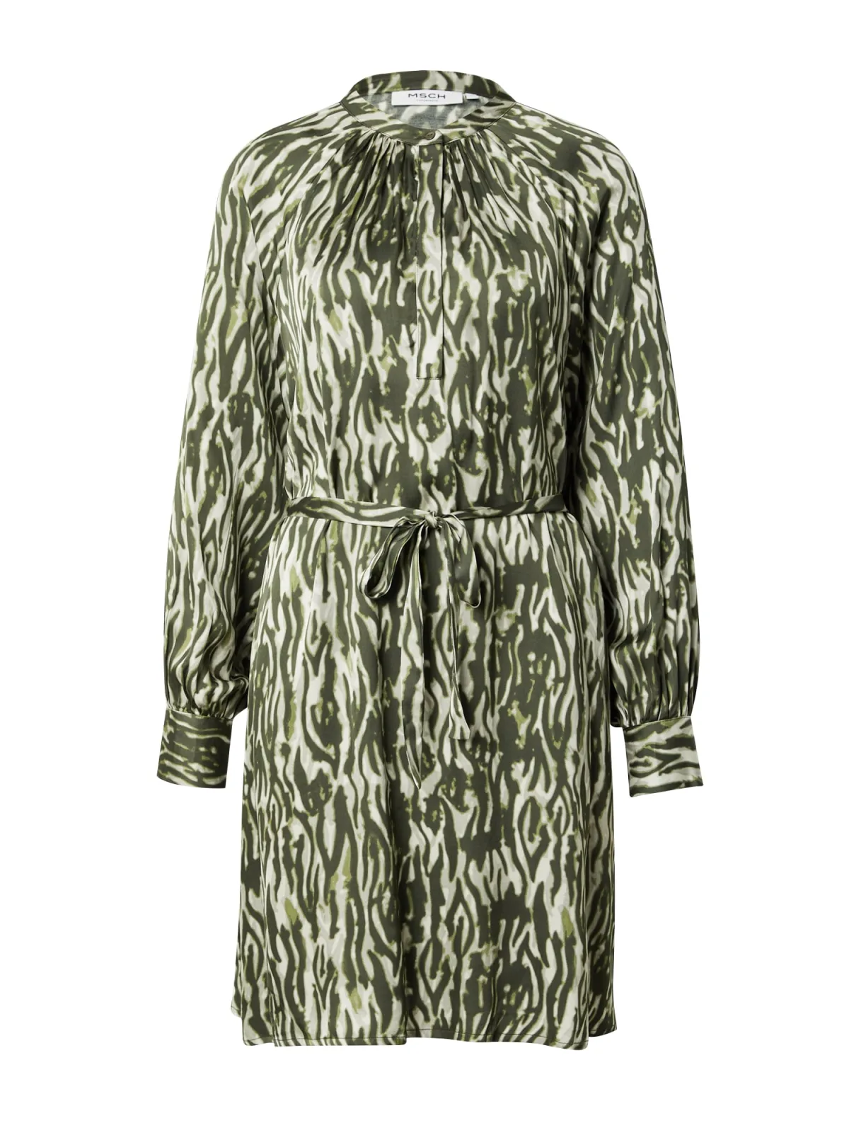MSCH COPENHAGEN Jurk ‘Joceline’ lichtgrijs / kaki / riet / wit