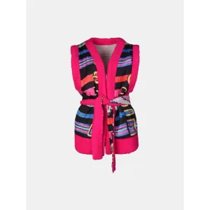 Mucho Gusto Gilet teddy roze omkeerbare riem print