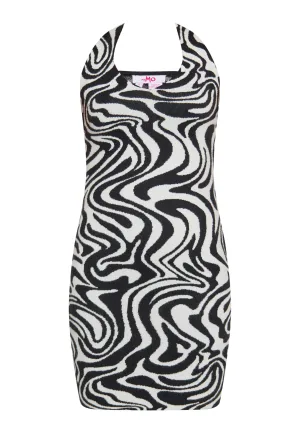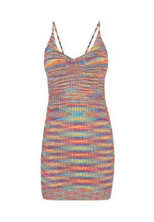 MYMO Gebreide jurk ‘Spring Summer’ donkerblauw / geel / jade groen / rood