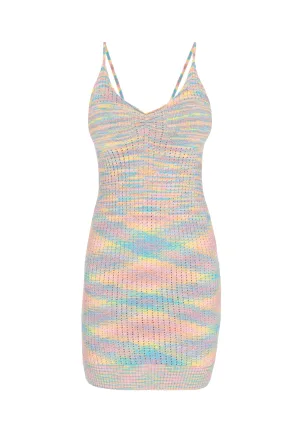 MYMO Gebreide jurk ‘Spring Summer’ lichtblauw / pasteelgeel / lavendel / rosa