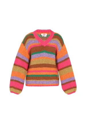 MYMO Oversized trui bruin / lavendel / oranje / framboos