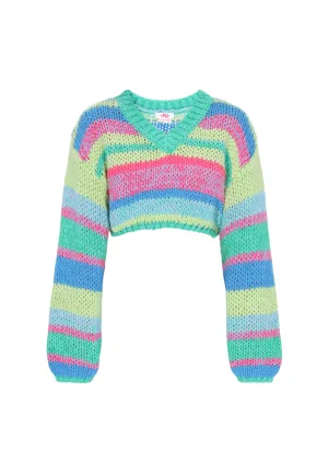 MYMO Trui turquoise / lavendel / pitaja roze / wolwit