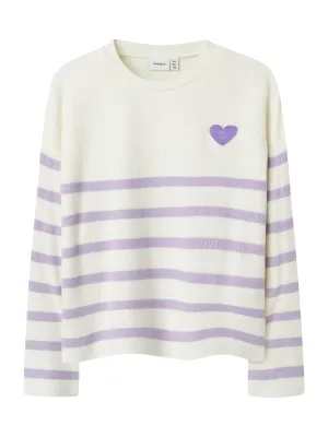 NAME IT Trui ‘NKFLine’ lavendel / wit
