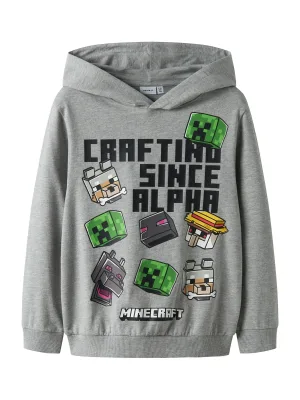 NAME IT Sweatshirt ‘NKMJET MINECRAFT’ grijs gemêleerd / groen / zwart / wit