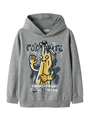 NAME IT Sweatshirt ‘NKMFOX FORTNITE’ navy / geel / grijs gemêleerd / wit