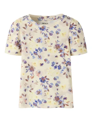NAME IT Jurk ‘NMFFLORAL’ goud / mintgroen / wit