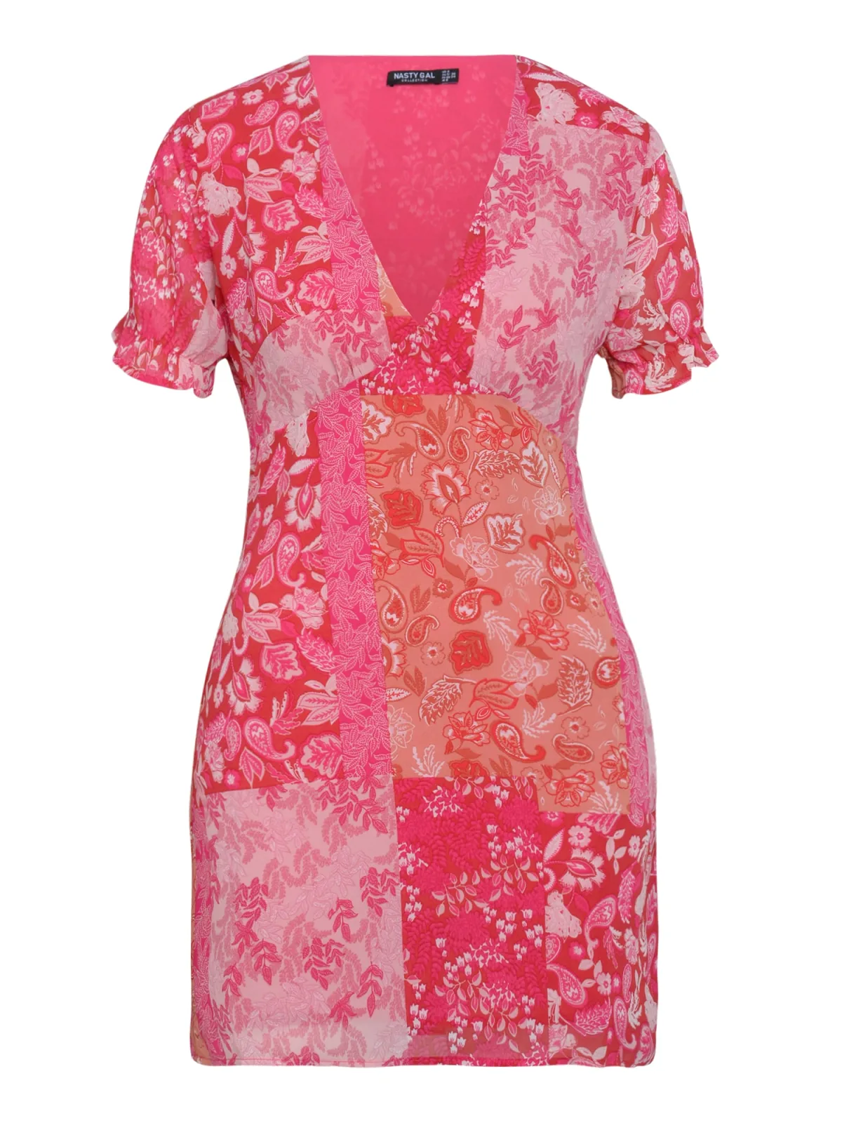 Nasty Gal Petite Jurk groen / lichtroze / rood / wit