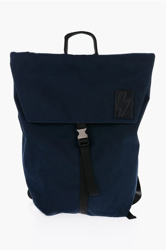 Tweekleurige nylon CITY FLAP-rugzak in blauw, zwart