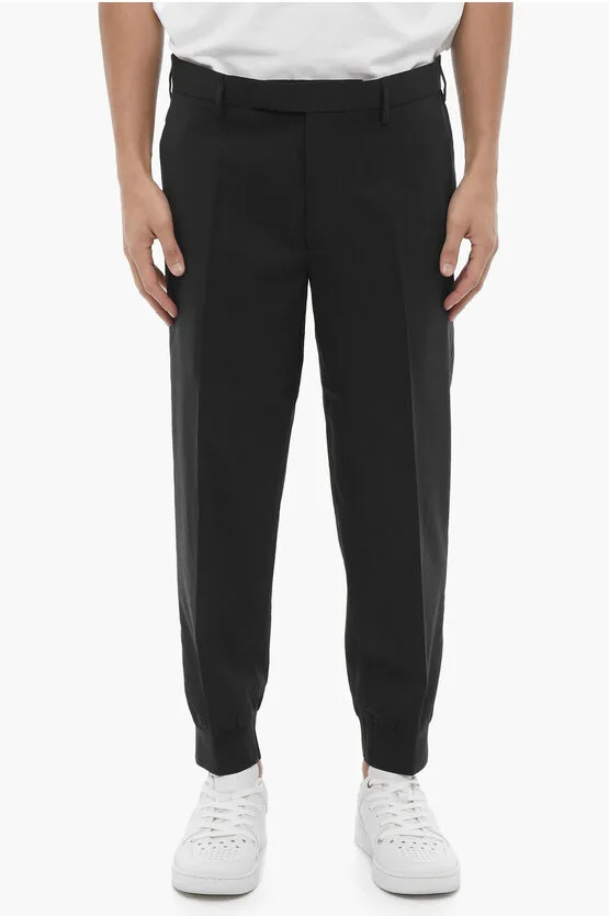 Viscose Blend Tapered Fit Sweatpants met Tape Detail in Zwart