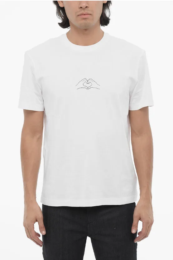 Slim Fit T-shirt met ronde hals en hartjesprint in wit