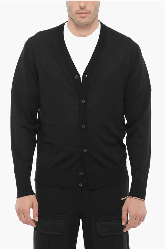 V-hals slim fit wollen vest in zwart