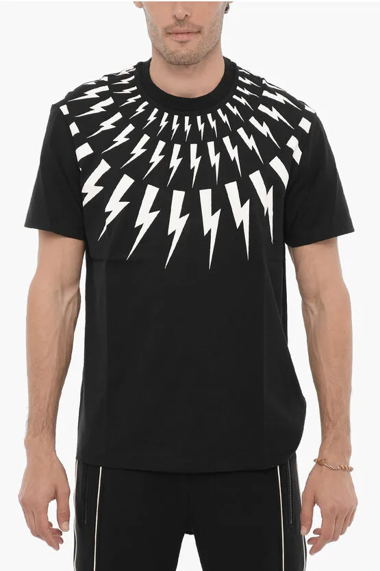 Slim Fit FAIRISLE THUNDERBOLT T-shirt met ronde hals in zwart