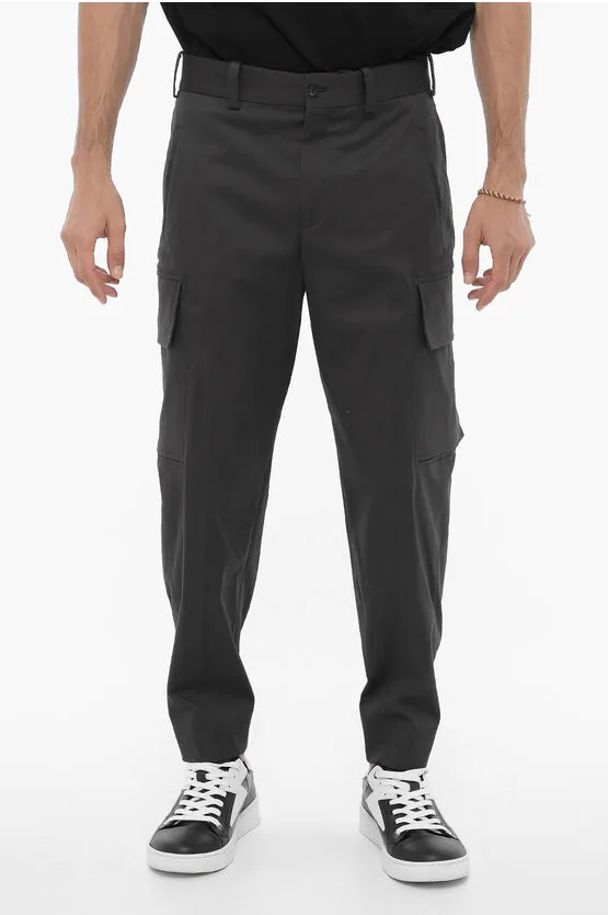 Cargo-joggingbroek van katoenmix met omgeslagen zoom in zwart