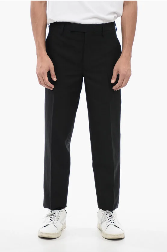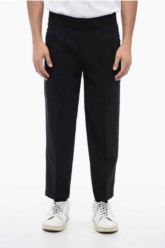 Tapered Fit linnenmix broek met dubbele plooi in zwart