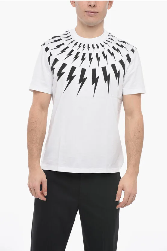 Slim Fit FAIR-ISLE THUNDERBOLT T-shirt met ronde hals in wit