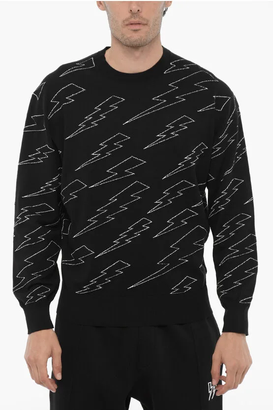 Lichtgewicht katoenen trui met ronde hals en Thunderbolt-borduursel in zwart