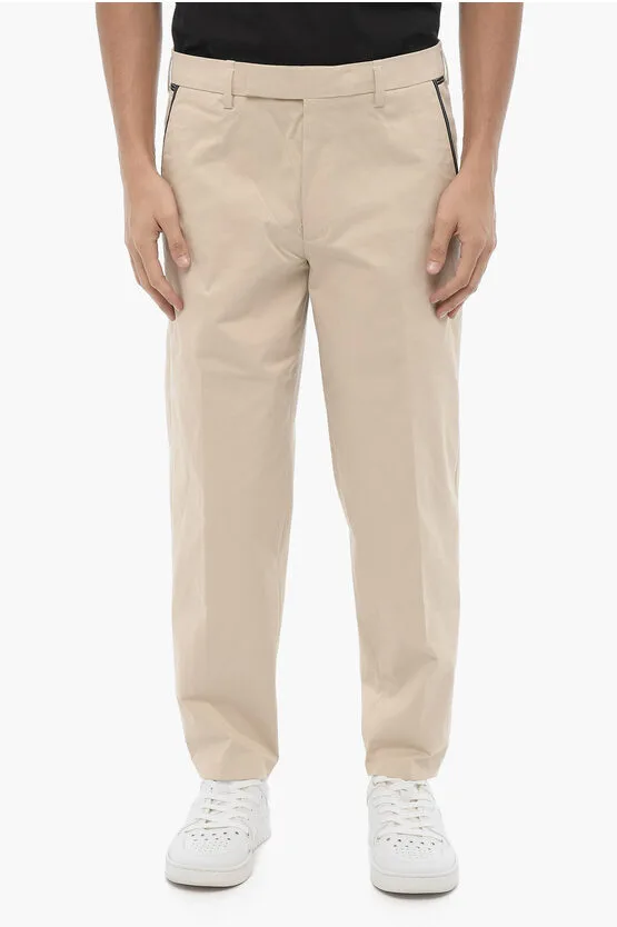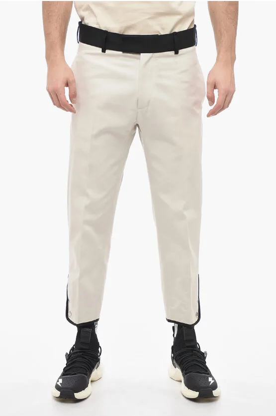 Slim Fit TOM-broek van katoenen keperstof met contrasterende tailleband in wit